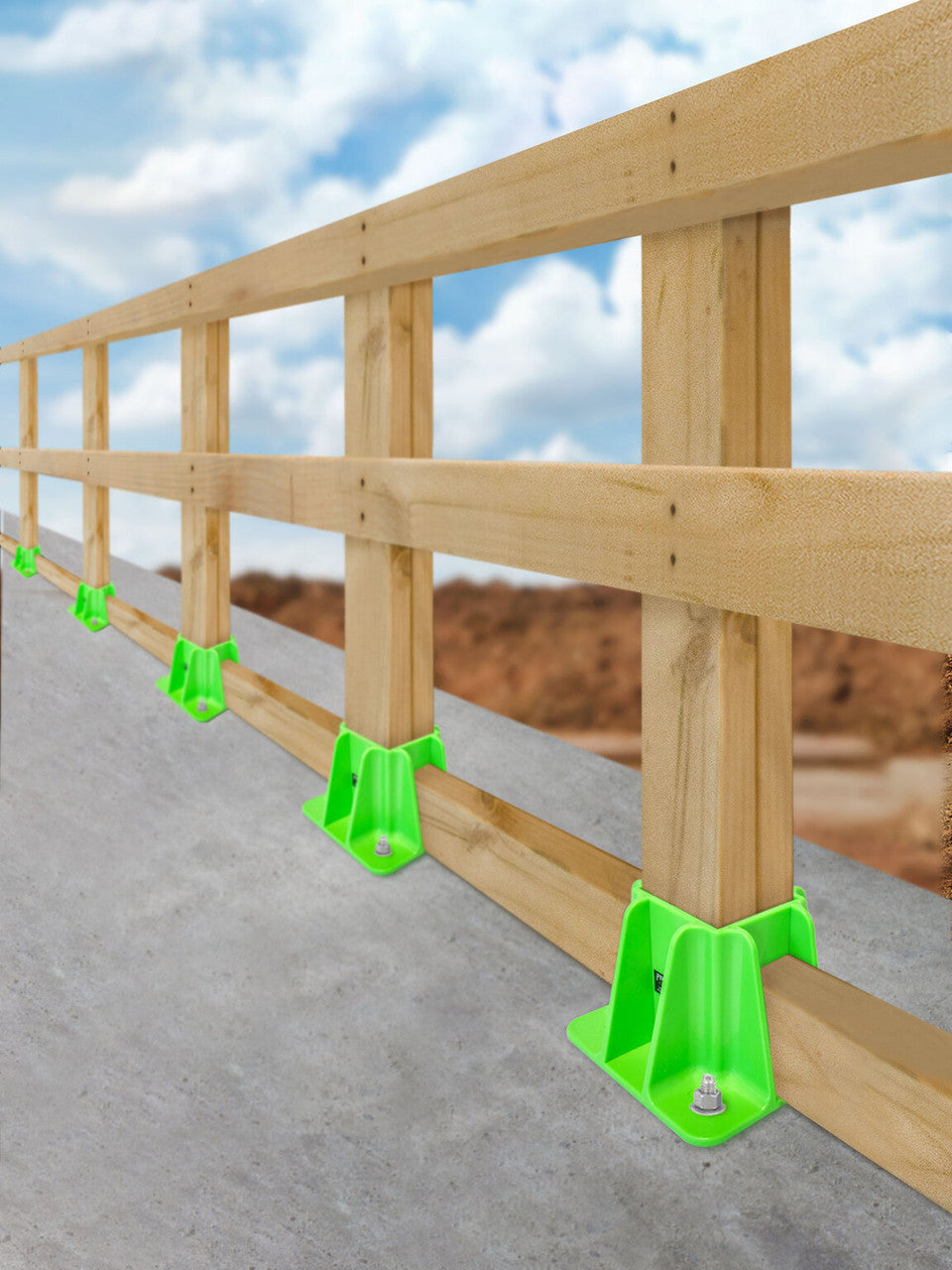 Our Safety Guardrail Boot Base is made out of high strength material composed of ABS plastic to last the duration of the job and it's reusable helping with cost savings so take it from one jobsite to the next jobsite. It's easily installed and comes with hardware included limiting down time and install time. The Safety Guardrail Boot Base meets or exceeds all OSHA relevant standards and its third party tested by an independent ISO certified lab to ensure product quality and compliance.